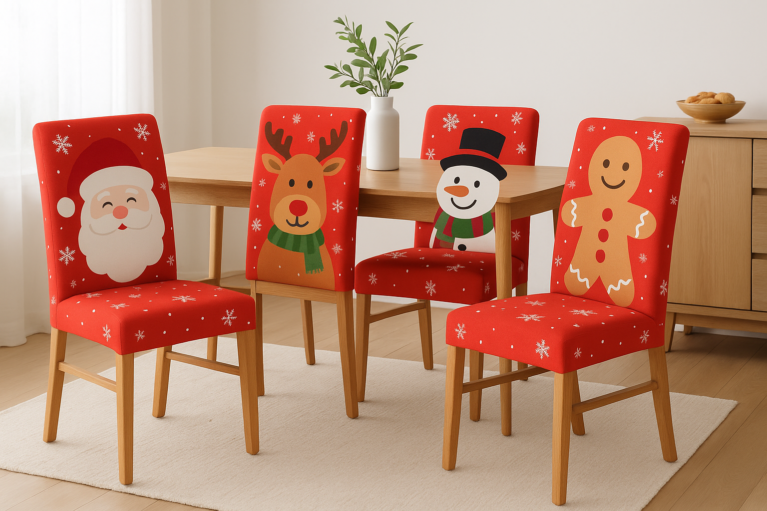 Me fascinaron 😍 cada silla con su diseño navideño se ve divina, y después todas quedan iguales con el color que escogí. Es como tener dos juegos en uno, ¡una ganga total!