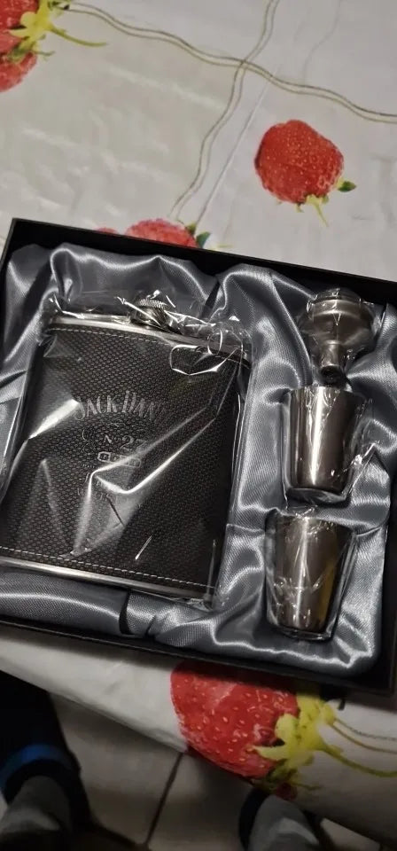 Le regalé esta licorera a mi esposo y quedó encantado. El material es de alta calidad y se nota en cada detalle. El formato curvo es realmente cómodo para llevarlo en el bolsillo del pantalón. El kit con los vasos y el embudo hace que sea muy práctico y completo. Sin duda, una compra excelente.