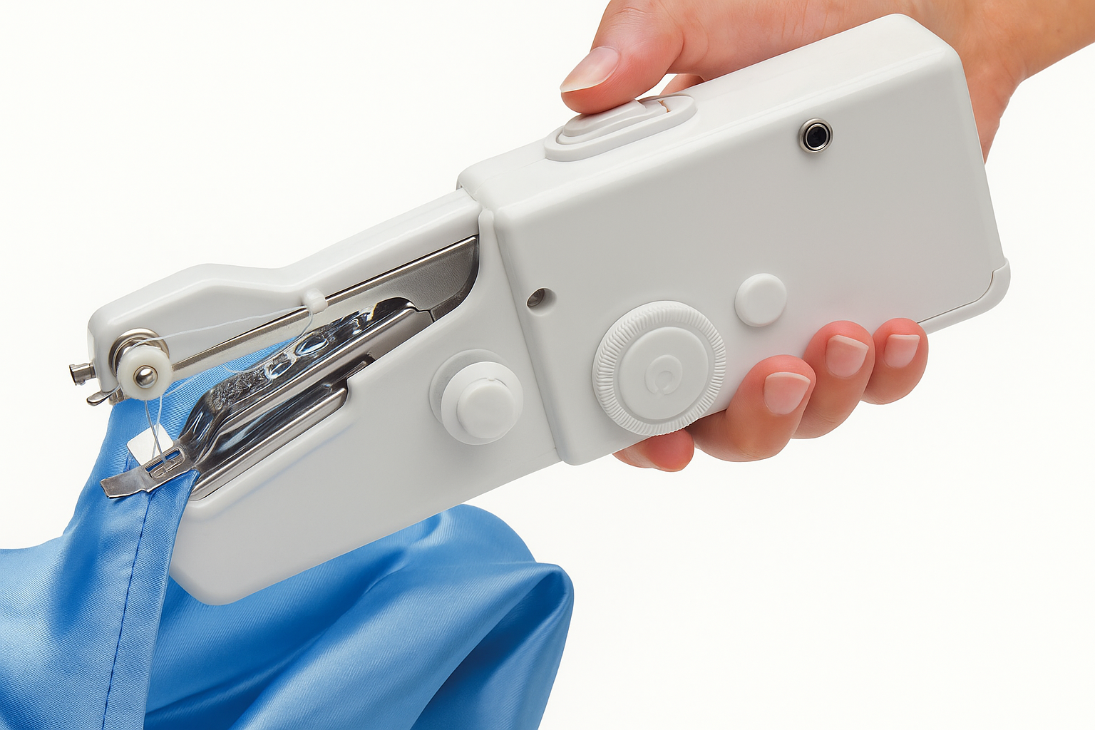 Funciona como una máquina de coser tradicional, pero en versión compacta. Solo debes colocar el hilo, pasar la tela y presionar el botón. ¡Así de fácil! Ideal para dobladillos, botones, cortinas, cojines y más.