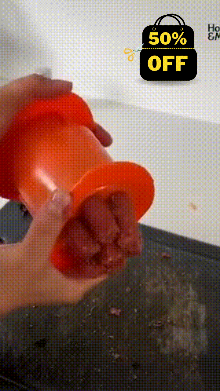 Ahorra tiempo y energía! Esta maquina forma 7 salchichas idénticas con una sola pulsación, lo que lo hace perfecto para hacer grandes porciones en minutos.