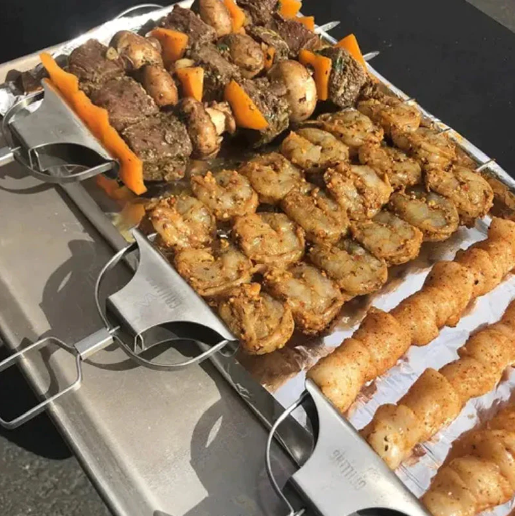 Estas brochetas son fáciles de girar, lo que las hace muy útiles cuando se asan grandes cantidades de alimentos.